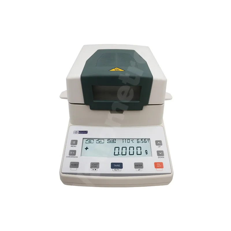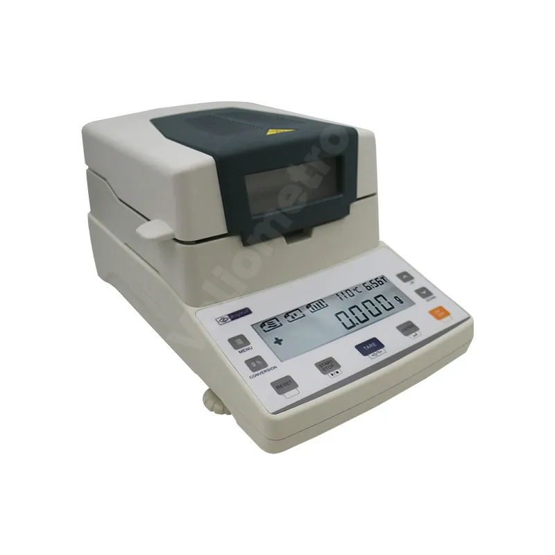 La balanza analítica de humedad XY110MW es un equipo de alta precisión diseñado para la determinación rápida y confiable del contenido de humedad en muestras sólidas y líquidas. Ofrece una capacidad máxima de 110 g y una resolución de 0.01 g (10 mg), garantizando resultados exactos en laboratorios de control de calidad, industrias alimentarias, farmacéuticas y químicas. Esta balanza de humedad digital emplea un sistema de calentamiento por lámpara halógena, que asegura un secado uniforme y eficiente. Incorpora una pantalla LCD retroiluminada, funciones de tara, cálculo automático de porcentaje de humedad y almacenamiento de resultados. La XY110MW combina precisión, rapidez y facilidad de uso, siendo ideal para procesos productivos y análisis de laboratorio que requieren confiabilidad en la medición del contenido de humedad.