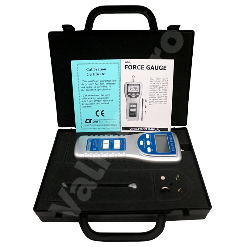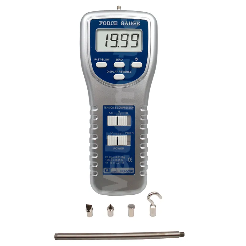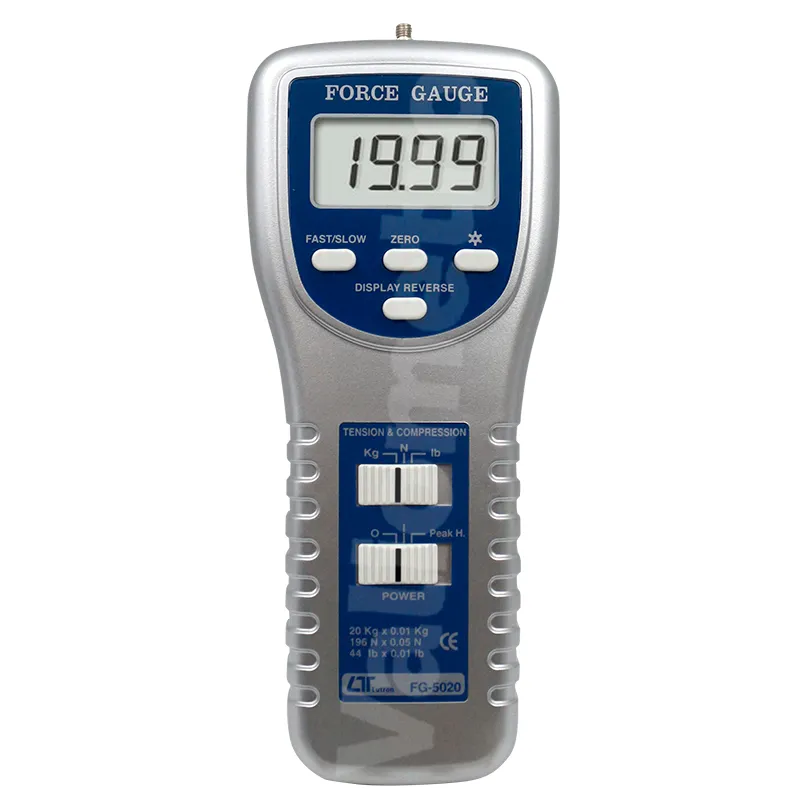 El LUTRON FG5020 es un dinamómetro digital de 20 KGF diseñado para medir fuerzas de tracción y compresión con alta precisión. Su pantalla digital ofrece lecturas rápidas y estables, mientras que su diseño portátil y ergonómico facilita su uso en laboratorio, control de calidad y aplicaciones industriales. Incluye funciones como pico máximo (Peak Hold), tara, retención de lectura y compatibilidad con soportes de prueba para mediciones más controladas. Una herramienta confiable y versátil para trabajos que requieren exactitud y repetibilidad.