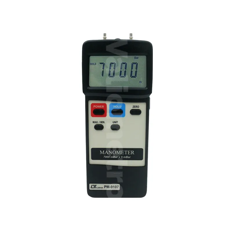 El PM-9107 es un manómetro digital profesional diseñado para medir presiones con alta precisión en sistemas neumáticos, líneas de gas no corrosivo, laboratorios y entornos industriales. Su amplio rango de medición de ±7000 mbar permite monitorear desde presiones bajas hasta aplicaciones de presión media-alta con excelente estabilidad.