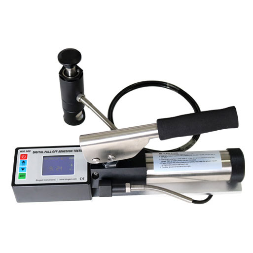 El probador de adherencia de extracción digital BGD 500 es un instrumento portátil y manual que se utiliza para medir la fuerza requerida para extraer un diámetro de prueba específico del recubrimiento de su sustrato mediante presión hidráulica. La presión se muestra en una pantalla LCD digital y representa la fuerza de adhesión del recubrimiento al sustrato.