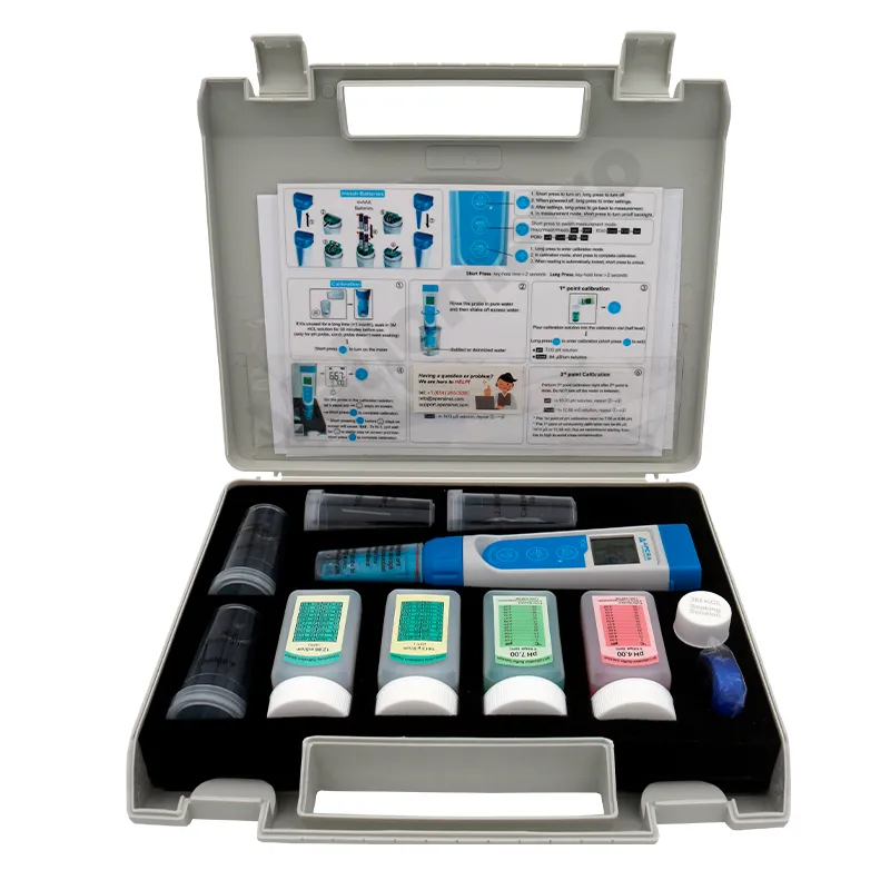 El Multiparámetro portátil 5 en 1 APERA PC60 es un equipo compacto y versátil diseñado para medir pH, conductividad (EC), TDS, salinidad y temperatura en una sola unidad portátil. Ideal para laboratorios, acuicultura, hidroponía, control de calidad de agua y procesos industriales, este medidor ofrece lecturas rápidas y precisas gracias a sus sensores de alta sensibilidad. Incluye calibración automática, pantalla digital clara y fácil manejo, facilitando la operación en campo o laboratorio. Su diseño ligero y resistente permite llevarlo a cualquier lugar, mientras que la memoria interna ayuda a registrar y analizar resultados de manera eficiente. El APERA PC60 combina precisión, portabilidad y facilidad de uso, convirtiéndose en una herramienta indispensable para profesionales que requieren mediciones multiparámetro confiables.