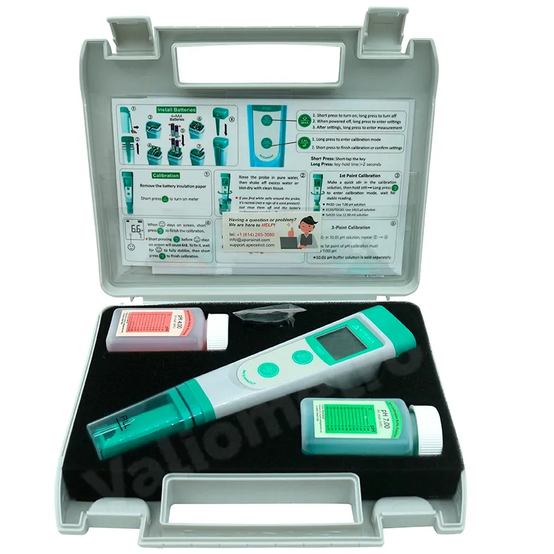 El Peachímetro de bolsillo PH20 es un equipo portátil y resistente, diseñado para la medición precisa del pH en suelos, soluciones acuosas y muestras agrícolas. Con certificación IP67, es resistente al agua y al polvo, ideal para trabajos en campo y laboratorio. Ofrece una precisión de ±0.1 pH y un amplio rango de medición de 0 a 14.0 pH, garantizando resultados confiables en cualquier condición. Su diseño compacto tipo lapicero y la pantalla digital de fácil lectura facilitan la portabilidad y la operación sencilla. Este medidor es ideal para agricultores, ingenieros agrónomos y técnicos de control de calidad, asegurando el monitoreo exacto de la acidez y alcalinidad del suelo o de soluciones acuosas.