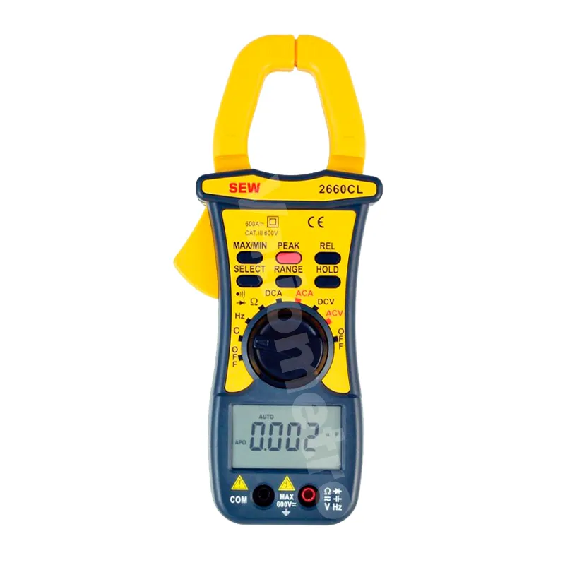 La Pinza amperimétrica SEW 2660CL permite medir corriente AC/DC hasta 600A con alta precisión.