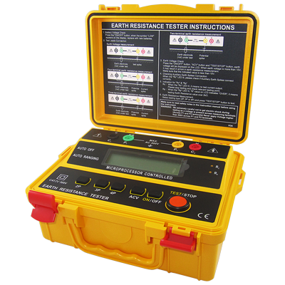 | Accesorios incluidos: | 4 cables de prueba (negro, amarillo, rojo y verde) 4 varillas de tierra auxiliares Manual de instrucciones Estuche rígido Fusible (0.1 A / 250 V 5 x 20 mm) |