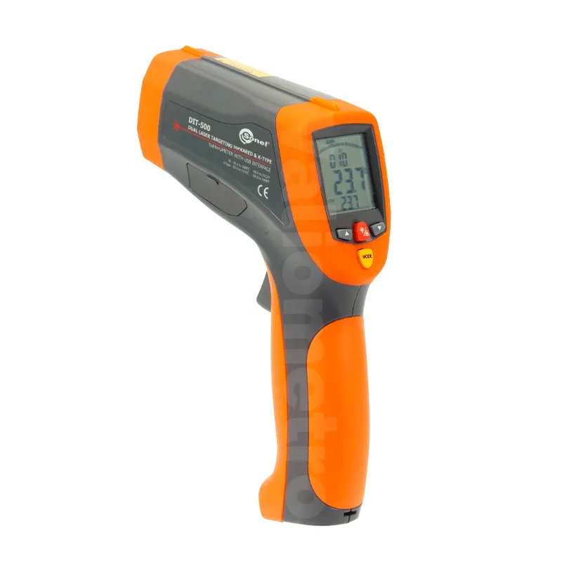 El Termómetro infrarrojo DIT-500 permite medir temperaturas sin contacto desde -50 hasta 1600°C.